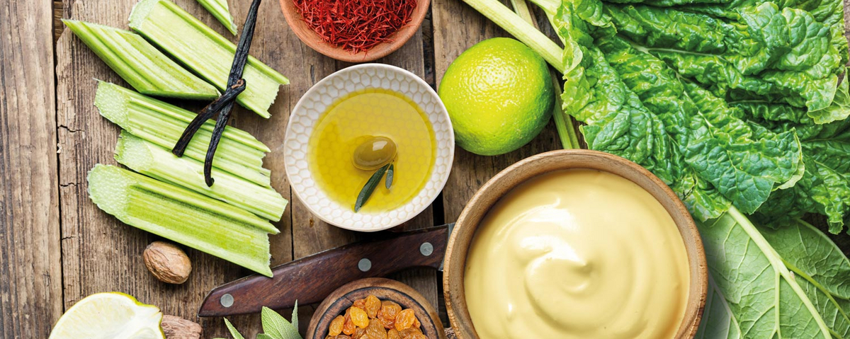 - Voeg de yoghurt, knoflook, olijfolie en citroensap toe. Klop dit tot een gladde, gele saus.