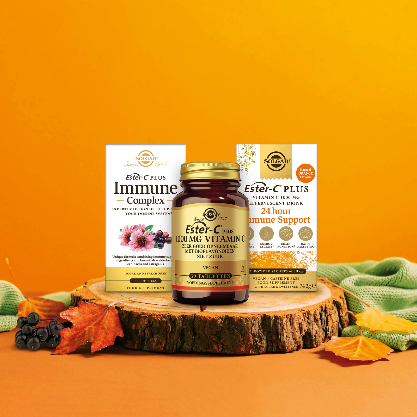Ester-C® Plus gaat nog een stapje verder. Deze speciaal voor Solgar ontwikkelde vorm, bevat Ester-C®, plús extra’s zoals bioflavonoïden, vitaminen, mineralen, kruiden of een immuuncomplex. Ester-C® Plus is er in verschillende doseervormen. Van plantaardige capsules, tabletten en softgels tot bruispoeder met sinaasappelsmaak.